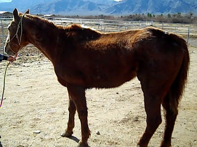 This is Indio, the thin mare. She needs to gain lots of weight, but nothing like Melvyn. She is very gentle.