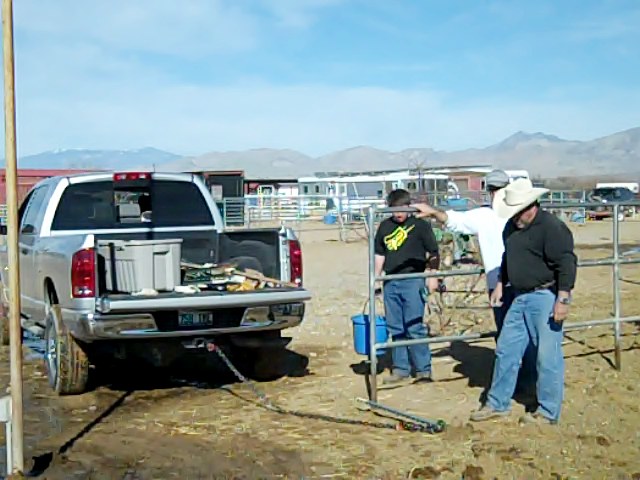 The guys pulled out the t-posts with Ed's truck...
